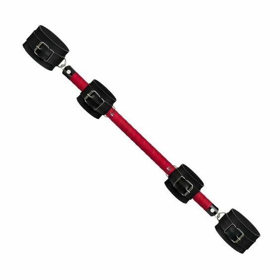 • Material: separador em madeira revestida por couro, algemas e tornozeleiras em couro