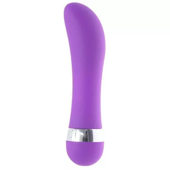 Vibrador em silicone com um motor multivelocidade controlado a partir de um botão giratório em sua base.